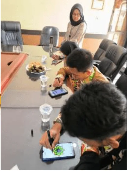 Gambar 3. Pelatihan Rancangan Motif Difabel Menggunakan Aplikasi IbisX Paint berbasis Android.